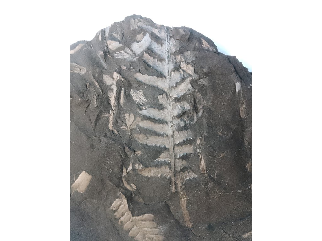 Kľúčové slová: fosílie, skamenelina, paleontológia, paprade, fosílne rastliny, nahosemenné rastliny, karbón, prvohory (paleozoikum), zberateľstvo, fosílna papraď, Neuropteris, Piesberg, Osnabruck, Nemecko, Európa